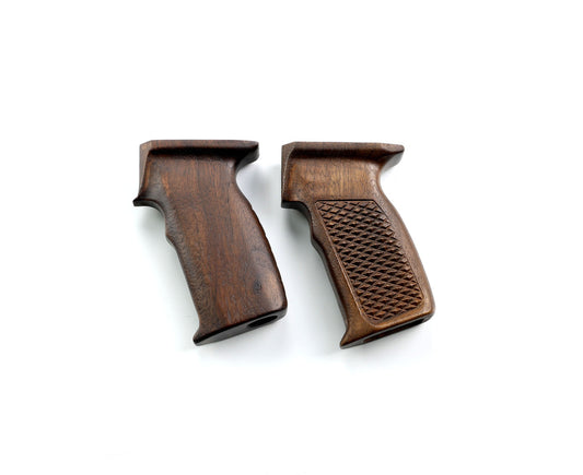 JMK Customs places a strong emphasis on quality, especially in the production of our machined grips. All grips are crafted from solid black walnut hardwood and meticulously designed for both aesthetics and functionality using CAD software. Following the design phase, the grips undergo CNC machining, hand finishing with dye, and a final treatment of tung oil. Our wood grips are designed for AK-47 platform and all firearms utilizing an AR-15 style grip. We offer both smooth and textured finishes.